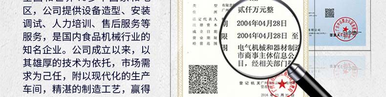 廣州旭眾食品機械有限公司是一家集科研開發(fā),生產(chǎn)設(shè)計,營銷服務(wù)為一體的現(xiàn)代化生產(chǎn)企業(yè)?,F(xiàn)代化生產(chǎn)車間,精湛制造技術(shù),所產(chǎn)機械歷經(jīng)市場重重考驗,不斷贏得海內(nèi)外客戶的贊譽。