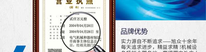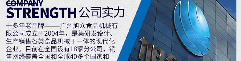 廣州旭眾食品機(jī)械有限公司是一家集科研開(kāi)發(fā),生產(chǎn)設(shè)計(jì),營(yíng)銷(xiāo)服務(wù)為一體的現(xiàn)代化生產(chǎn)企業(yè)?,F(xiàn)代化生產(chǎn)車(chē)間,精湛制造技術(shù),所產(chǎn)機(jī)械歷經(jīng)市場(chǎng)重重考驗(yàn),不斷贏得海內(nèi)外客戶的贊譽(yù)。